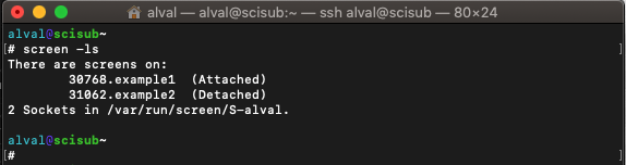 # Screen the session while on the scisub host