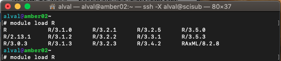 module load RAfter sshing onto the cluster and bsubing onto an execution host in order to load R you have to type the following: